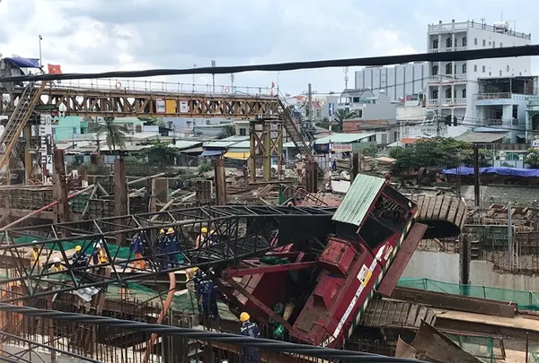 Trước đó, trưa (22/7), một chiếc cần cẩu dài khoảng 25m ở khu vực cống kiểm soát ngăn triều Trung Nam giáp ranh giữa phường 7 và phường 16 quận 8, TPHCM bất ngờ đổ sập vào khu dân cư khiến nhiều người tháo chạy tán loạn.