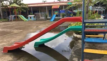 Trường Mầm non Cần Thạnh 2, trường duy nhất chưa đạt chuẩn quốc gia về cơ sở vật chất tại Cần Giờ, thường xuyên bị ngập úng.