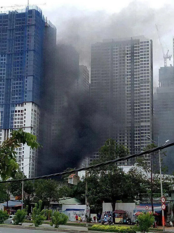 Đám cháy được cho là bùng phát từ khu vực đang thi công tai tầng trệt của 1 tòa tháp.
