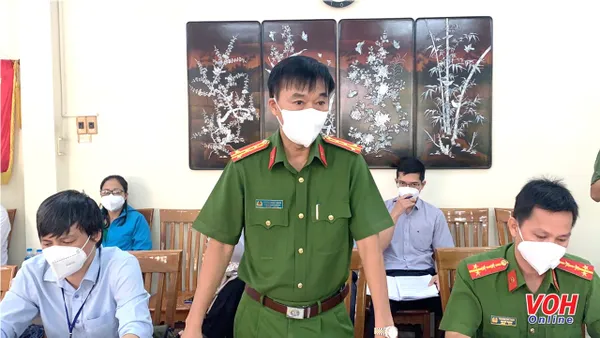 Trong buổi sáng ngày 7/12, Đại tá Huỳnh Ngọc Quan, Phó trưởng Phòng Cảnh sát PCCC&CNCH - Công an TPHCM dẫn đầu đoàn công tác làm việc với UBND quận 5.