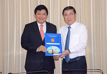 Chủ tịch UBND TPHCM Nguyễn Thành Phong trao quyết định điều động, bổ nhiệm ông Phạm Phú Quốc làm Tổng Giám đốc Công ty TNHH Một thành viên Phát triển công nghiệp Tân Thuận.