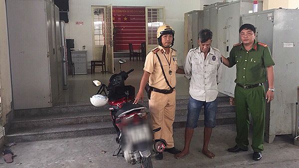 Đối tượng trộm xe máy bị cảnh sát giao thông bắt giữ.