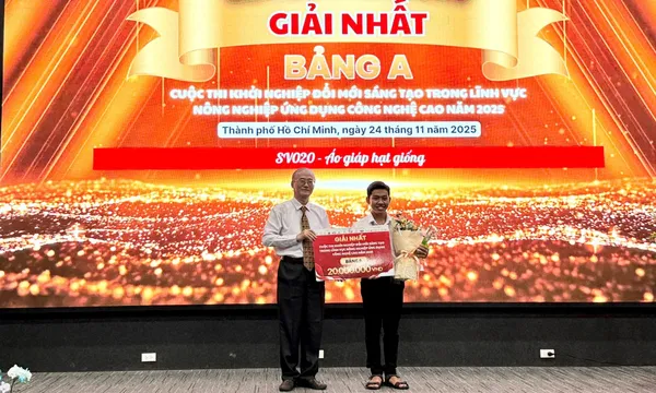 Một giải được trao cho dự án “Áo giáp hạt giống” của sinh viên Thạch Hoàng Anh (Đại học Cần Thơ) nghiên cứu tạo ra lớp màng sinh học hoạt động bao bọc bên ngoài hạt giống, giúp cung cấp các vi sinh có lợi, tăng độ phì nhiêu của đất, kích hoạt hệ vi sinh trong đất.