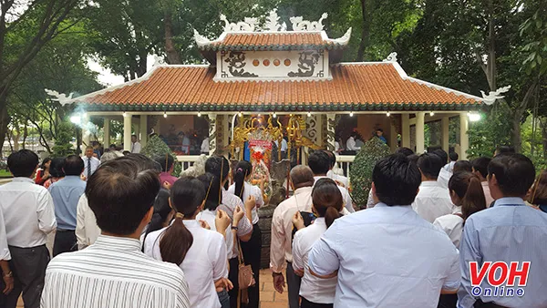 Đảng uỷ Khối Doanh nghiệp TP dâng hương tại Đền tưởng niệm các Vua Hùng trong Công viên Tao Đàn.