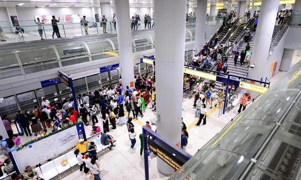 Không gian ngầm khu vực trước chợ Bến Thành, nơi có nhà ga metro Bến Thành, công trình trung tâm của hệ thống đường sắt đô thị TPHCM, đang được hoàn thiện với thiết kế hiện đại, đa chức năng. Ga có 4 tầng ngầm, sâu khoảng 32m, dài 236m, rộng 60m, đóng vai trò điểm trung chuyển giữa các tuyến metro.