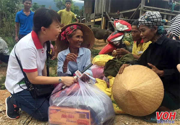 Phóng viên VOH trao quà và phỏng vấn người dân vùng lũ