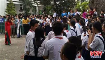 Hàng trăm học sinh được di tản ra khu vực an toàn. (Ảnh: Linh Chi)