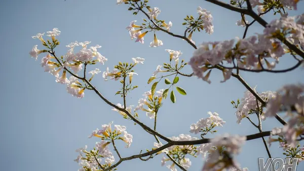 (VOH) - Một số tuyến đường tại TPHCM rợp sắc hoa kèn hồng. Năm nay do nắng nóng nên hoa kèn hồng nở sớm hơn mọi năm.