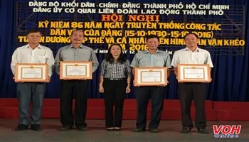 Dịp này, Đảng ủy cơ quan Liên đoàn Lao động TP đã tuyên dương và khen thưởng cho 6 tập thể và 9 cá nhân điển hình dân vận khéo năm 2016.
