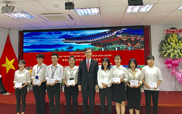 Ông Lim Jae Hoon, Tổng lãnh sự Hàn Quốc tại TPHCM trao học bổng cho sinh viên