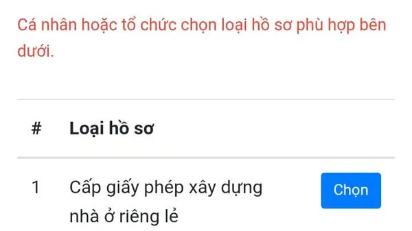 - Bước 3: Chọn loại hồ sơ theo nhu cầu của người nộp.
