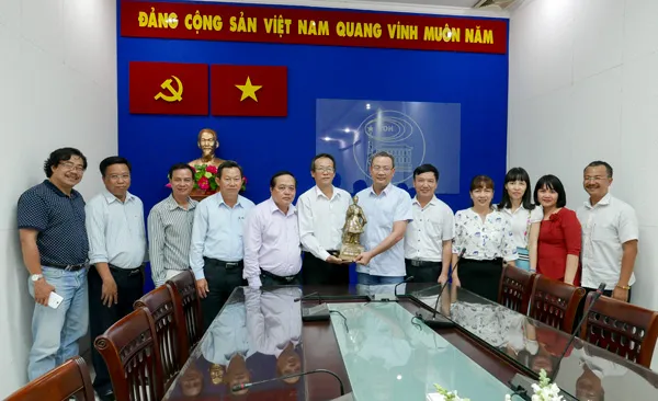 Lãnh đạo Đài PT-TH Nam Định tặng quà lưu niệm cho lãnh đạo Đài TNND TPHCM.