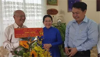Bà Tô Thị Bích Châu - Chủ tịch Ủy ban Mặt trận Tổ quốc Việt Nam Thành phố thăm bác sĩ lão thành