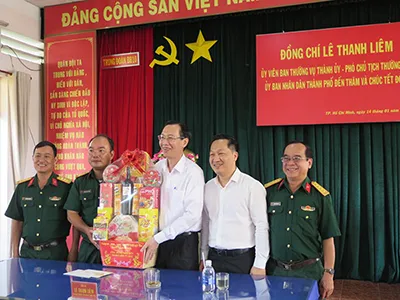Ông Lê Thanh Liêm-Phó Chủ tịch Thường trực Ủy ban nhân dân TPHCM chúc tết tại Trung đoàn 10 Bộ Tư Lệnh TPHCM