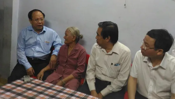 # Cùng ngày, đoàn công tác lãnh đạo thành phố do bà Trần Kim Yến – Chủ tịch Liên đoàn Lao động TP dẫn đầu đi thăm các gia đình chính sách tại quận Phú Nhuận.