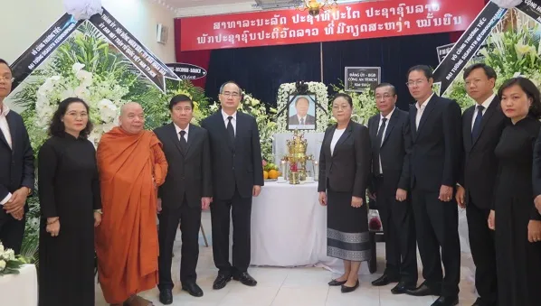 Sau lễ viếng, thay mặt đoàn, Bí thư Thành ủy TPHCM Nguyễn Thiện Nhân xúc động ghi sổ tang gởi lời chia buồn sâu sắc nhất đến Đảng, Nhà nước, Quốc hội, Chính phủ, nhân dân Lào.