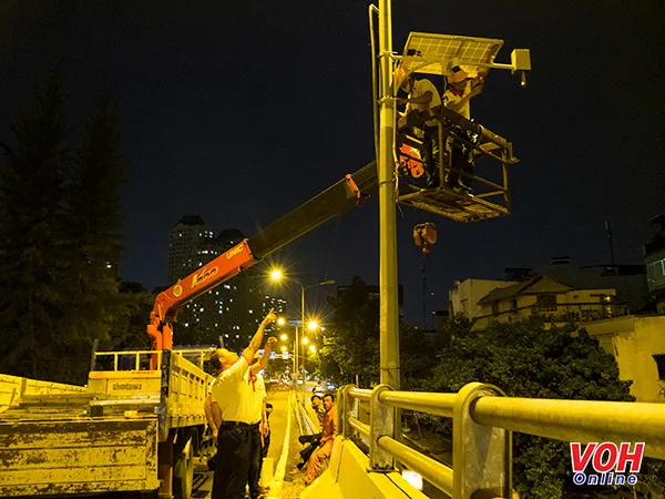 Lắp đặt thí điểm trạm quan trắc và cảnh báo ngập trên cầu Nguyễn Hữu Cảnh (quận Bình Thạnh).