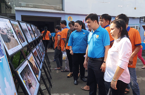 Công nhân viên chức, lao động tham quan triển lãm ảnh về An toàn lao động.
