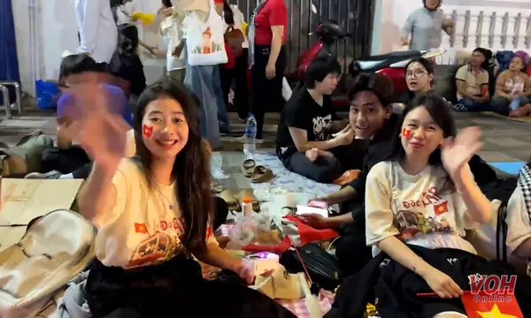 Khi kim đồng hồ chưa điểm 22h, nhiều vị trí dọc các tuyến phố lịch sử đã kín chỗ. Những gia đình trẻ, nhóm bạn bè, thậm chí cả những cụ ông, cụ bà mang theo ký ức thời chiến, cùng nhau ngồi lại dưới ánh đèn đô thị, cùng ngóng về một bình minh rực rỡ sẽ diễn ra trên chính những con phố quen thuộc.