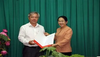 Bà Võ Thị Dung, Phó Bí thư Thành ủy TPHCM (phải) trao quyết định cho ông Dương Thế Trung.
