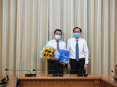Phó Chủ tịch Thường trực UBND TPHCM Lê Thanh Liêm trao quyết định cho ông Hoàng Minh Tuấn Anh