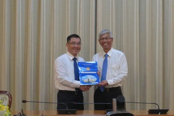 Phó Chủ tịch UBND TPHCM Võ Văn Hoan trao quyết định tiếp nhận và bổ nhiệm ông Huỳnh Thanh Khiết.