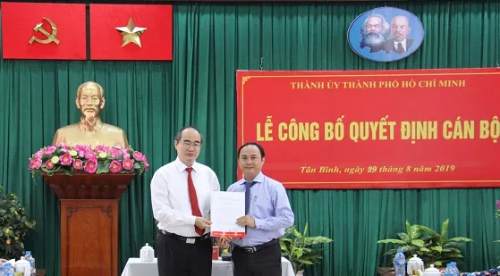 Sáng nay 29/8, Bí thư Thành ủy Nguyễn Thiện Nhân trao quyết định điều động, chỉ định ông Lê Hoàng Hà, Phó Bí thư Quận ủy, Chủ tịch UBND quận Gò Vấp tham gia Ban Chấp hành, Ban Thường vụ, giữ chức Bí thư Quận ủy Tân Bình nhiệm kỳ 2015-2020. Quyết định có hiệu lực từ ngày 1/9/2019.