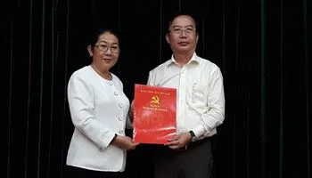 Bà Võ Thị Dung - Phó Bí thư Thành ủy, trao quyết định bổ nhiệm bà Thái Thị Bích Liên giữ chức vụ Phó Bí thư Đảng ủy Khối Dân Chính Đảng TPHCM.