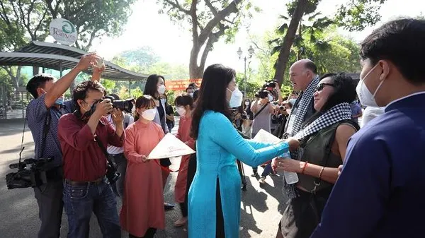 Sáng 8/4, tại Bảo tàng Lịch sử Việt Nam, Phó Chủ tịch UBND TPHCM Dương Anh Đức cùng lãnh đạo các sở ngành, hiệp hội, doanh nghiệp du lịch đã cùng tham dự chào đón đoàn 130 du khách quốc tịch Mỹ đến du lịch tại Thành phố. Đây là đoàn du khách quốc tế đông nhất đến TPHCM kể từ khi ngành du lịch mở cửa hoàn toàn trở lại từ ngày 15/3/2022.