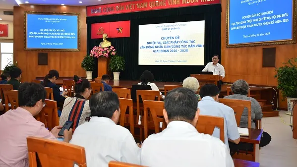 Trong phiên làm việc, ông Đặng Quốc Toàn – Bí thư Quận ủy thông tin nhanh kết quả Đại hội đại biểu Đảng bộ Thành phố Hồ Chí Minh lần thứ XI, nhiệm kỳ 2020 – 2025. Đại hội đã đề ra các mục tiêu cụ thể cho nhiệm kỳ 2020 - 2025 với 26 chỉ tiêu quan trọng trong các lĩnh vực: kinh tế, xã hội, an ninh quốc phòng, xây dựng Đảng… Đảng bộ Thành phố cũng xây dựng và thực hiện 4 chương trình phát triển với 51 đề án, chương trình thành phần.