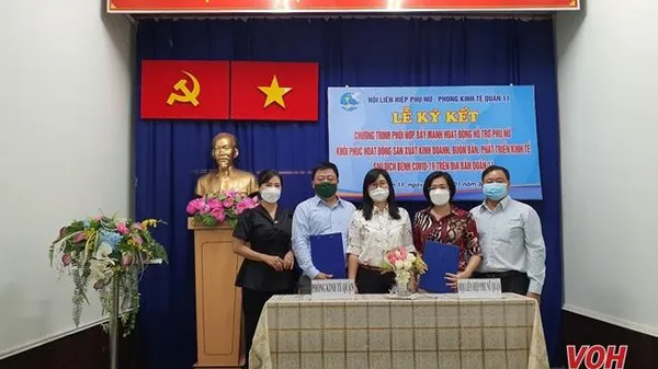 Ngày 19/1, Hội Liên hiệp Phụ nữ Quận 11 phối hợp với Phòng Kinh tế Quận tổ chức Lễ ký kết liên tịch về đẩy mạnh hoạt động hỗ trợ phụ nữ khôi phục hoạt động sản xuất kinh doanh, buôn bán, phát triển kinh tế sau dịch bệnh Covid – 19.