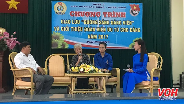 Dịp này, chương trình đã giao lưu với bà Dư Huệ Liên, Tú chính trị quận 5, Ban vận động phụ nữ Hoa quận 5; anh Nguyễn Minh Cảnh, đảng viên trẻ, nhân viên sửa chữa ô tô Công ty CP Ánh Dương Việt Nam; chị Huỳnh Thị Bé Ren, đẳng viên trẻ, giáo viên Trường THPT Trần Khai Nguyên.