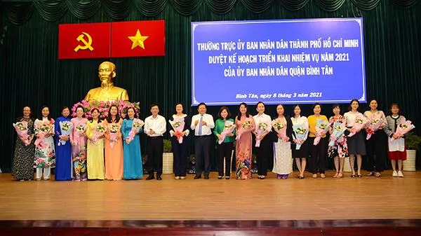 Báo cáo trước đoàn công tác, Chủ tịch UBND quận Bình Tân Nguyễn Minh Nhựt cho biết, để thực hiện hiệu quả chủ đề năm 2021: “Năm xây dựng chính quyền đô thị và cải thiện môi trường đầu tư” và thực hiện hoàn thành 3 mục tiêu: “Phát triển kinh tế; phòng chống dịch bệnh; bầu cử Quốc hội và Hội đồng nhân dân các cấp”, quận Bình Tân đề ra 27 chỉ tiêu chủ yếu về kinh tế: 03 chỉ tiêu; quản lý và phát triển đô thị - môi trường: 09 chỉ tiêu; văn hoá - xã hội: 09 chỉ tiêu; cải cách hành chính: 01 chỉ tiêu; quốc phòng - an ninh: 05 chỉ tiêu.