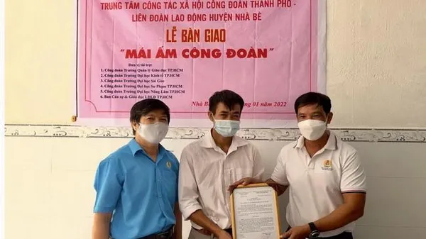 Sáng 18/1, Trung tâm Công tác xã hội Công đoàn TPHCM phối hợp Liên đoàn Lao động Huyện Nhà Bè trao tặng “Mái ấm Công đoàn” cho gia đình đoàn viên Nguyễn Xuân Thanh ở địa chỉ số5/29 Nguyễn Bình, Xã Nhơn Đức – Nhà Bè.