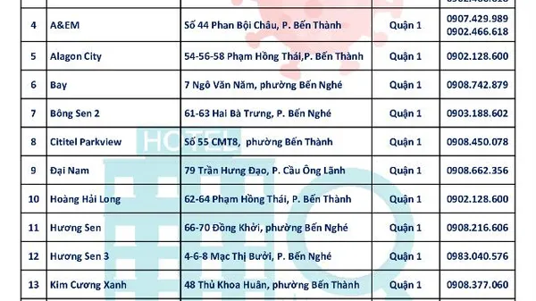 DANH SÁCH CÁC KHU CÁCH LY CÓ THU PHÍ TẠI THÀNH PHỐ HỒ CHÍ MINH