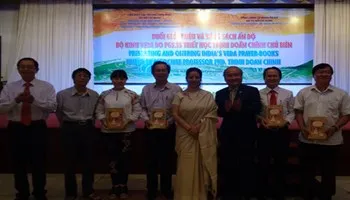 Lãnh đạo tặng sách kinh Veda cho đại diện các trường Đại học.