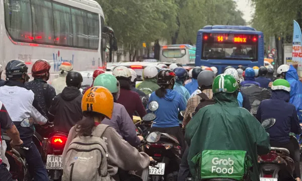 Các tuyến lân cận như Cách Mạng Tháng Tám, Hai Bà Trưng, Điện Biên Phủ ghi nhận mật độ phương tiện tăng mạnh khi người dân rời công sở sớm, vừa tránh mưa, vừa tranh thủ không khí Giáng sinh.