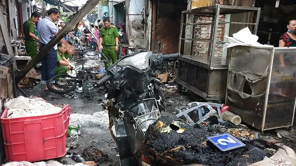 Vụ hỏa hoạn thiêu rụi nhiều tài sản, hàng hóa của 6 căn nhà và ít nhất 5 xe máy bị thiêu rụi.