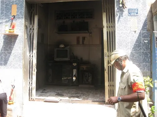 Bảo vệ dân phố tham gia bảo vệ hiện trường 1 vụ cháy ở quận Bình Tân, TP.HCM trong năm 2014 (ảnh: TNO)