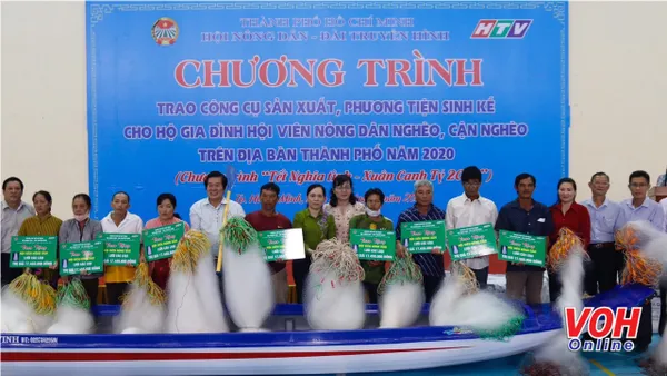 Tại buổi lễ, Hội Nông dân TPHCM đã trao bảng tượng trưng tặng 188 công cụ sản xuất, phương tiện sinh kế cho 184 hộ hội viên nông dân nghèo, cận nghèo trên địa bàn thành phố, với tổng trị giá hơn 2,9 tỷ đồng. Kinh phí được trích từ nguồn vận động của chương trình “Tết nghĩa tình – Xuân Canh tý năm 2020”.