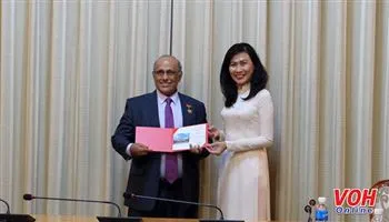 Thay mặt lãnh đạo TP, bà Nguyễn Thị Thu đã trao tặng huy hiệu TP cho ông Youssouf Abdel Jelil
