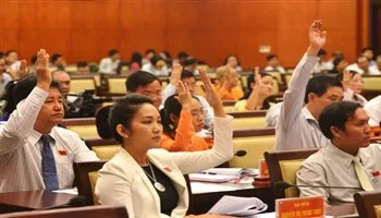 Các đại biểu HĐND TPHCM biểu quyết tại kỳ họp thứ hai HĐND TPHCM khóa IX.
