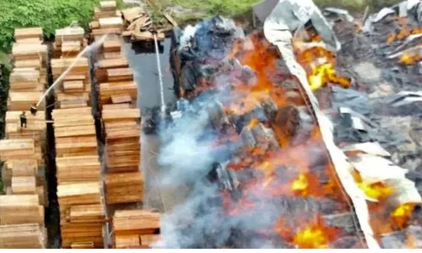 Khoảng 1h sáng, người dân sống quanh khu vực phát hiện khói và lửa bốc cao từ nhà xưởng nên hô hoán và báo cho lực lượng chức năng. Chỉ trong thời gian ngắn, ngọn lửa lan nhanh, bao trùm toàn bộ khu vực sản xuất và kho chứa gỗ.