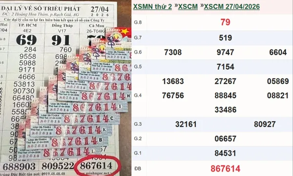 Cùng ngày, đài Cà Mau với dãy số 867614 ghi nhận 10 vé độc đắc trúng tại tỉnh An Giang. Các tờ vé đầu tiên được đổi thưởng tại đại lý vé số Triều Phát ở phường Rạch Giá (tỉnh An Giang).