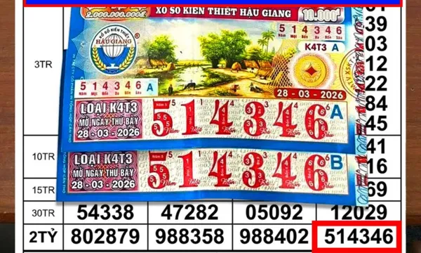 Đại lý vé số Huỳnh Linh (Cà Mau) xác nhận vừa đổi thưởng cho khách hàng tại địa phương. Cụ thể, cặp vợ chồng này may mắn sở hữu 2 tờ có dãy số 514346 thuộc đài Hậu Giang, mở thưởng ngày 28/3, trúng 4 tỷ đồng (chưa trừ thuế).