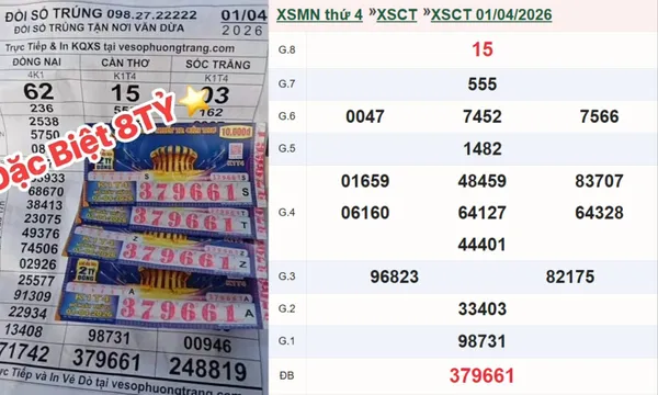 Theo thông tin từ đại lý vé số Ba Dừa ở Tây Ninh (Long An cũ), 4 tờ đặc biệt thuộc đài Cần Thơ, mang dãy số 379661, mở thưởng ngày 1/4, với tổng giá trị lên đến 8 tỷ đồng (chưa trừ thuế).
