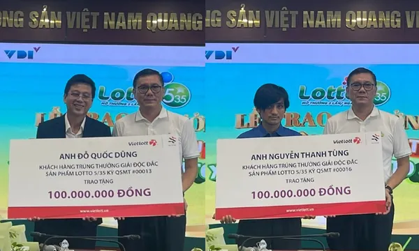 Ngày 15/7, Công ty Xổ số Điện toán Việt Nam (Vietlott) đã tiến hành trao giải độc đắc loại hình xổ số tự chọn Lotto 5/35 cho hai khách hàng may mắn.