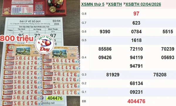 Theo kết quả xổ số miền Nam ngày 2/4, anh Lưu Quốc Duy, chủ đại lý vé số Duy ở phường Trà Vinh (Vĩnh Long), xác nhận đã bán ra 16 tờ vé trúng giải an ủi với tổng trị giá 800 triệu đồng cho một khách quen. Cụ thể, cọc vé số có dãy số 504476, thuộc Bình Thuận mở thưởng cùng ngày.