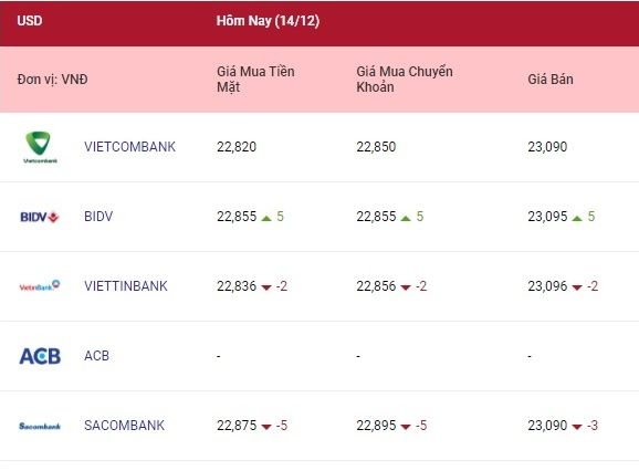 Ngày 14/12, Ngân hàng Nhà nước (NHNN) công bố tỷ giá trung tâm của đồng Việt Nam với đô la Mỹ ở mức: 23.191 đồng.