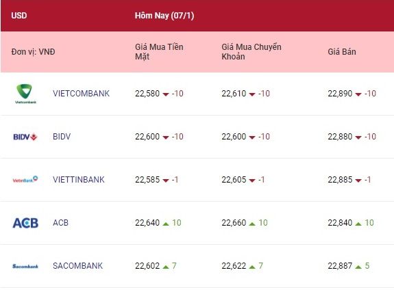 Vietcombank: 22.580 đồng/USD (mua) và 22.890 đồng/USD (bán).